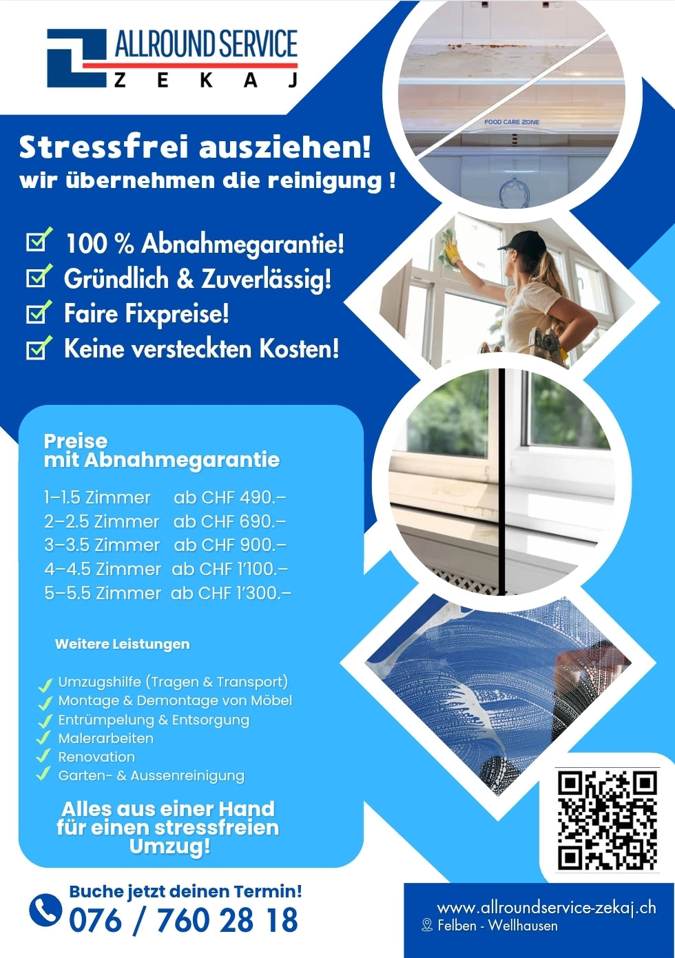 - Stressfrei umziehen, wir übernehmen die Reinigung mit Abnhamegarantie und Fixpreisen.